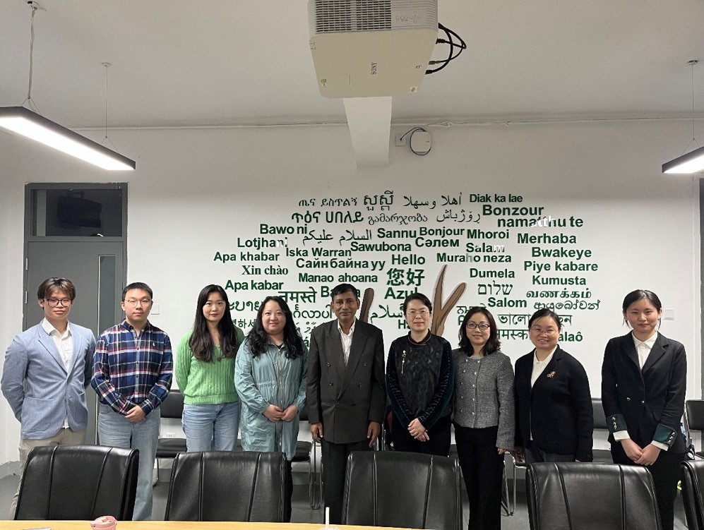 院长苏莹莹会见孟加拉国达卡大学现代语言学院院长、孔子学院外方院长雷扎·卡利姆·法齐尔(A. B. M. Razaul Karim Faquire)教授。苏莹莹院长和法齐尔教授就非通用语专业开设现状、教育模式、毕业生去向等问题进行了交流,双方就交换生协议等合作事宜交换意见。马来语专业邵颖副教授、僧伽罗语专业江潇潇副教授、印地语专业教师李亚兰博士、迪维希语专业教师朱方方以及孟加拉语专业部分研究生本科生参与了座谈。