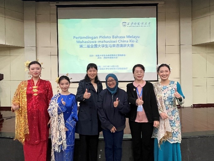 院长苏莹莹教授带队参赛。此次比赛旨在加强全国各高校马来语专业师生间的交流与合作,提高马来语专业大学生的演讲水平。本次大赛的演讲主题为“用马来语讲中国故事”,大赛分为低年级组和高年级组进行。演讲现场氛围热烈,参赛学生以饱满的热情讲述中国故事,传播中国文化。演讲完毕后,评委老师对选手们的精彩表现进行了专业点评,并提出了改进建议。
